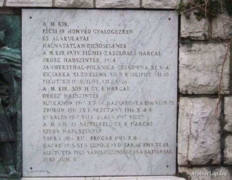 A pécsi m. kir. 19. honvéd gyalogezred emlékműve Pécs főterén: